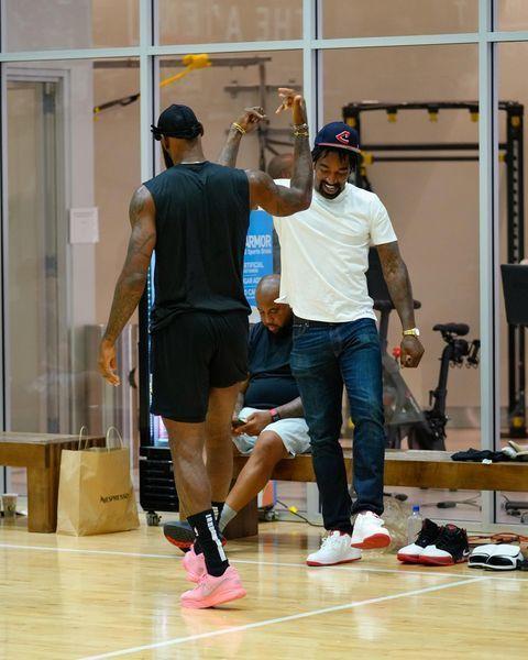 来到纽约参加乐福的婚礼,詹姆斯也没忘了保持训练。婚礼前,他还和乐福、JR-史密斯一起来到球场上练球。