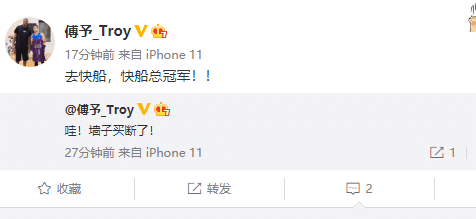 记者傅予在社交媒体上谈到了沃尔去到快船的消息,直呼:“去快船,快船总冠军!!”