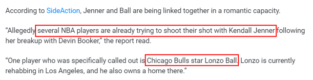 此前,美媒SideAction称,布克和詹娜分手之前,就有疑似出轨的举动,被看到和多位女孩调情。另外,他也一直不愿意向詹娜求婚,两人都想专注于事业,最终,詹娜向他提出了分手。SideAction还报道:“詹娜和布克分手后,多位NBA球员已经开始尝试追求詹娜了,其中一个球员的名字被特别指出,他就是公牛控卫朗佐-波尔。波尔目前在洛杉矶养伤,他的家也在那里。”