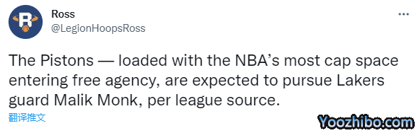 来源:JRS直播06-27 11:06JRS直播06月27日讯 ,据美媒Legion Hoops报道,预计底特律活塞将追求湖人后卫马利克-蒙克,今夏活塞是联盟拥有最大薪资空间的球队,大概有4500万美元的薪资空间,而湖人仅能给640万年薪,恐怕蒙克会被抢走。