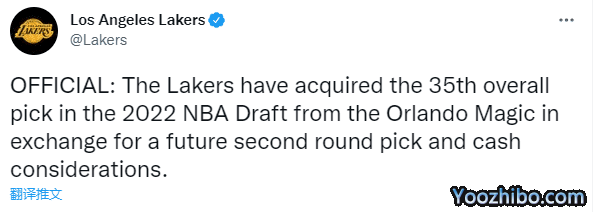 来源:JRS直播06-24 08:10JRS直播06月24日讯 ,湖人今夏第一笔交易达成,湖人把一个未来次轮选秀权和部分现金送到魔术,换来今年选秀大会上的第35号签,湖人官方已经宣布该交易;此前湖人试训了很多年轻人,换来35号签的最大目的就是捡漏,湖记表示过去几年曾在相似顺位选中库兹马等球员。