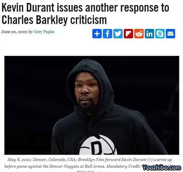 骂战持续升级!杜兰特网上回击巴克利:忌妒我们赚的比你多