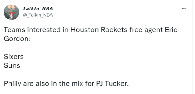 同样来自Windhorst的报道,76人还有兴趣签下PJ-塔克。塔克决定不执行740万美元的球员选项,成为一名自由球员,若76人和他签约,塔克预计将和哈登再次聚首。两人曾在火箭共同效力,私交很深。另外,公牛也对塔克有兴趣。