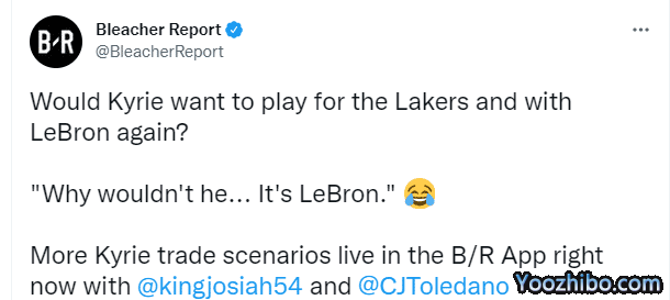很明显,NBA记者希望湖人送走威少并且交易得到欧文,Josiah Johnson更是表示欧文想要前往湖人联手詹姆斯;露天看台还发推写道:湖人应该为欧文交易谁。