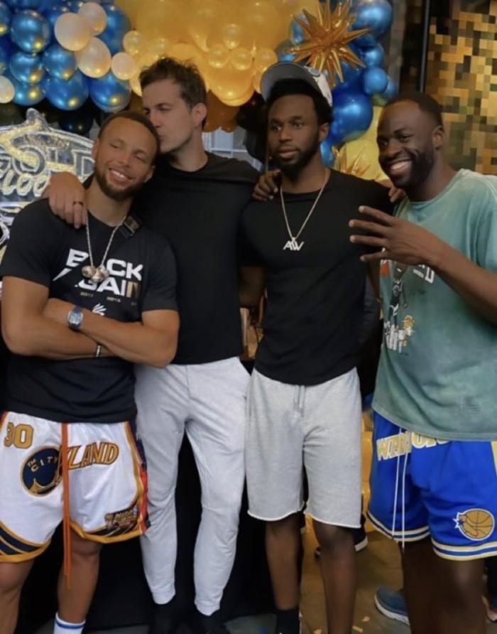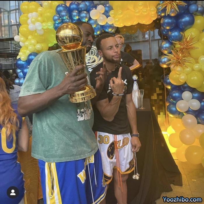 在夜店狂欢期间,库里和格林合影时竖中指庆祝,库里面带微笑并且一脸醉意,手里拿着串有三枚冠军戒指的项链;格林则是握着FMVP奖杯,露出发狠的歪嘴表情;对此有球迷调侃谦逊的库里不见了。