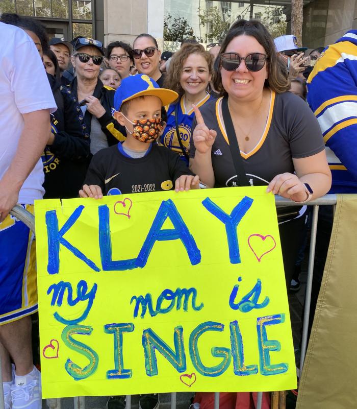 另外汤普森被求婚,游行时小球迷举牌为他的妈妈求婚,牌子上写着:克莱,我的妈妈是单身;克莱疑似用手指向一名女球迷,该女球迷晒视频并配文:克莱,我知道你刚刚指了我,但如果你想娶我你就尽管说。