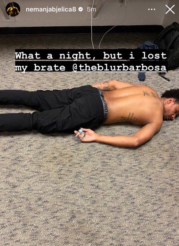 据勇士球星维金斯透露,坐飞机返回湾区的时候,飞机上是一群醉醺醺的家伙,并且机舱内音乐很吵;此前别利察曾晒出39岁巴博萨不省人事醉倒在地,赤裸上半身直接趴在地上。