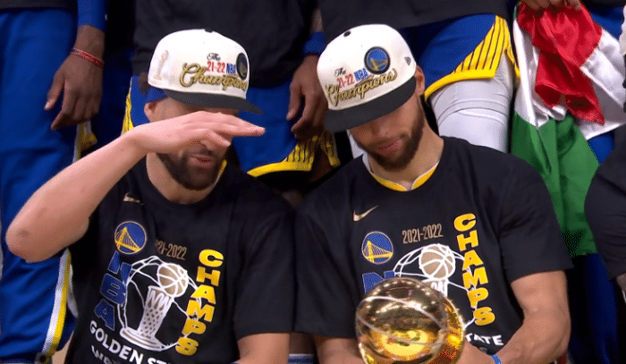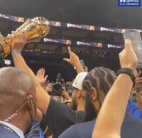 勇士更衣室庆祝曝光!狂泼香槟+法克格林 全队合影库里克莱C位抱奖杯