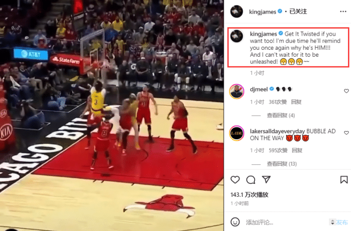 詹姆斯专门更新Ins,晒出浓眉湖人时期攻防两端的集锦——空接暴扣、隔扣字母哥、双手补扣;大帽欧文、大帽巴特勒;迎射约基奇三分绝杀、单挑哈登不讲理中投等名场面。