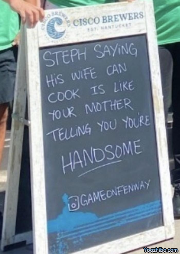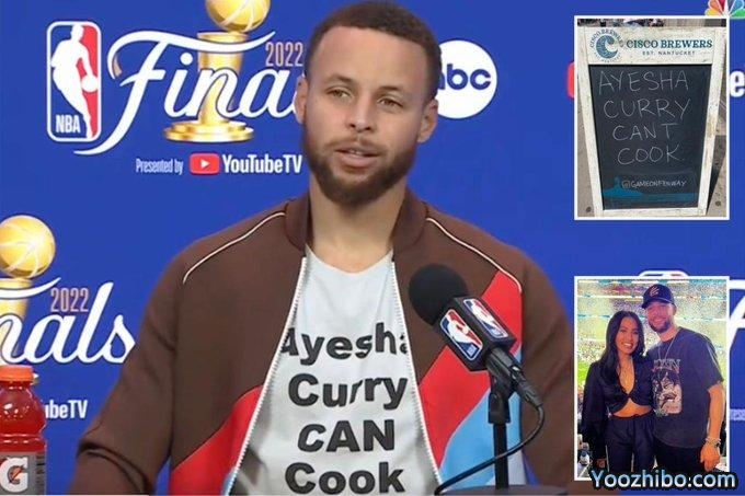 来源:JRS直播06-16 10:38JRS直播06月16日讯 ,勇士和凯尔特人G6大战的前一天,绿军球迷再次嘲讽库里的爱妻不会做饭,这一次,凯尔特人多名球迷身穿印有“阿耶莎-库里不会做饭”的特制T恤合影,并在店门口的招牌上写道:阿耶莎-库里仍然不会做饭!库里说他老婆会做饭就像你妈说你很帅一样!