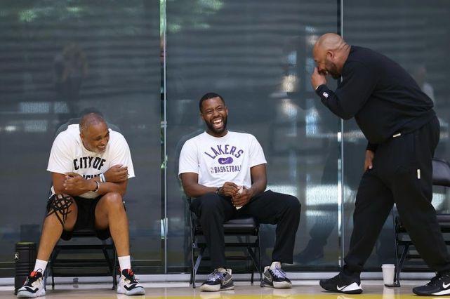 詹姆斯在外度假时,湖人也在继续试训新秀。助教菲尔-汉迪晒出了他和新帅哈姆以及老搭档昆顿-克劳福德一起在场边观看试训的场面,三人有说有笑,气氛相当融洽。