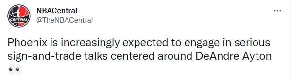 Marc Stein表示,距离自由市场开启还有不到三周的时间,有一点似乎很明确,那就是太阳越来越有可能围绕艾顿展开严肃的先签后换交易讨论,外界越来越怀疑太阳是否愿意用一份长期巨额的合同在艾顿身上投资。