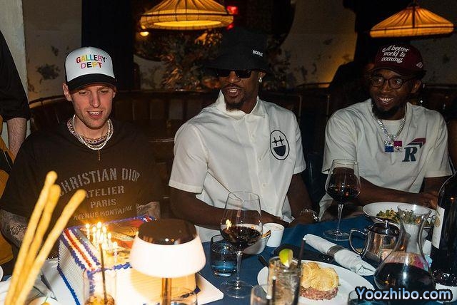 巴特勒和米切尔都身穿白色上衣,安东尼身穿印有7号的连帽衫,戴着眼镜尽显大佬范;其中米切尔帽子上印有“A better world is coming一个更美好的世界即将到来”。