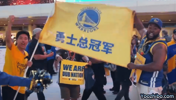 魔鬼主场来袭!中文大旗现身大通中心,外国球迷:勇士总冠军