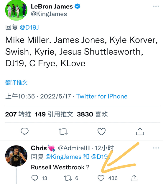 这其中有一名勇士的球迷非常抢镜,他的头像是勇士3号球员普尔,在下面的留言获得了不少人的点赞,他的回复是“威少”