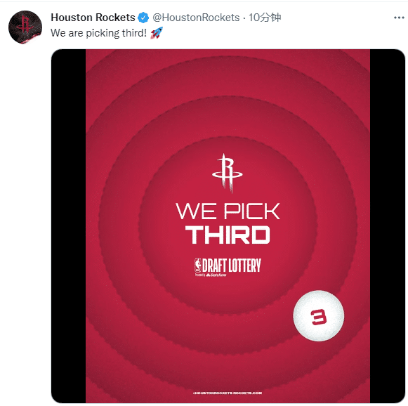 火箭的状元梦再次破灭,火箭官推发文:我们抽中了探花签。