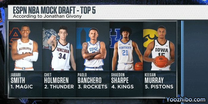 ESPN模拟预测魔术会用状元签选中贾巴里·史密斯,雷霆用榜眼签选中霍姆格伦,火箭用探花签挑选保罗·班切罗,国王用4号秀挑选谢顿-夏普。