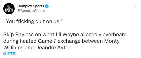 来源:JRS直播05-17 11:08JRS直播05月17日讯 在西部半决赛G7生死战中,太阳33分惨败独行侠,大比分3-4被淘汰出局;太阳出局还爆发内讧,艾顿和蒙蒂-威廉姆斯在太阳替补席发生激烈争执;美媒爆料内幕,蒙蒂对艾顿非常生气,爆粗口:你TM的放弃了我们。