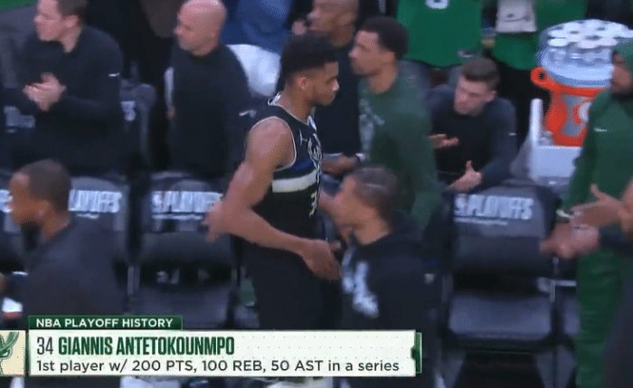 最后时刻,雄鹿主帅布登霍尔泽眼看翻盘无望,便陆续撤下主力球员。字母哥离场,与队友们击掌致意。随后,字母哥一屁股坐在板凳上,闭上自己的眼睛,仰天叹息非常绝望。不过,现场暖心的一幕出现了。绿军主场球迷起立,为字母哥送上掌声。来自波士顿北岸花园的掌声,是对字母哥这轮系列赛最高的褒奖。