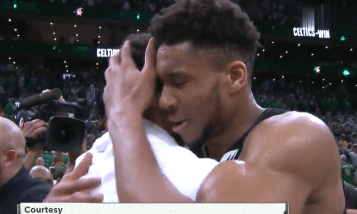 赛后,字母哥和塔图姆长时间拥抱,并且不停地说着什么。字母哥还拍了拍塔图姆的脑袋,似乎在勉励后辈。英雄相惜的时刻总是短暂的,接下来塔图姆要率队前往东决,他们的对手,是2年前淘汰他们晋级总决赛的热火。