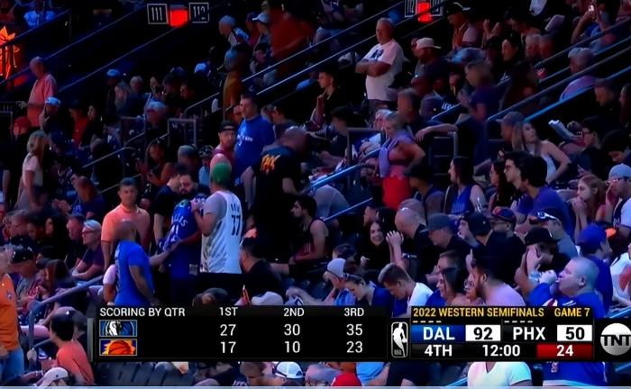 而此时,太阳主场早已一片沉寂,时不时有球迷发出阵阵嘘声。镜头给到看台上的球迷,他们要么颓然坐在板凳上,要么双眼呆滞神情沮丧。所有人都不敢相信,他们支持了一整个赛季的球队,在这个夜晚之前,到底发生了什么?
