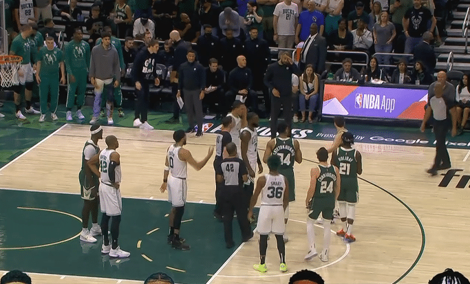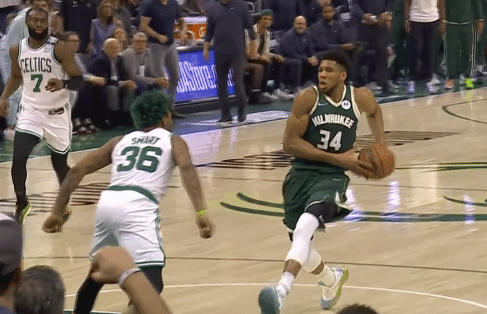 第二节的比赛开始后,塔图姆突破上篮得分,洛佩兹单臂暴扣回应,塔图姆抛投再中,霍勒迪中投命中,塔图姆、布朗连续命中三分球,塔图姆上篮再中,凯尔特人取得了10分的领先优势,雄鹿边线球失误,格兰特-威廉姆斯反击,字母犯规,这也是他本场比赛个人第2次犯规,霍乐迪三分命中,塔图姆篮下不中,字母反击打中并且造成斯玛特犯规,