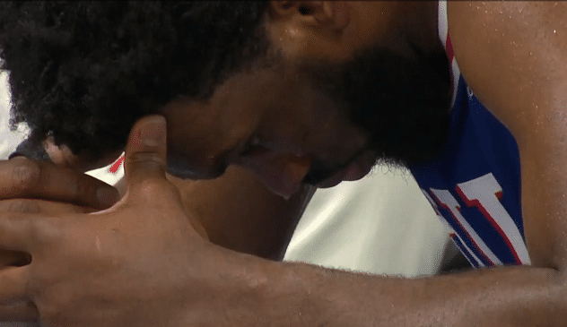 此前恩比德在季后赛被淘汰出局之后会哭泣,但这次恩比德没有哭,他在被换下之后坐在替补席上低着头,此时胜负已分,当比赛结束之后,恩比德也没有起来,他依旧在场边难过。恩比德已经贡献了自己的所有,没有遗憾了。带伤复出,哪怕是遇到伤病也不退缩,扛起了球队大旗。只是可惜球队再度被淘汰,冲击总冠军的梦想破灭。
