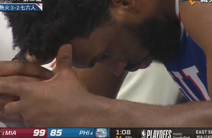 但第四节初段,热火又轰出一波8-0,分差瞬间来到19分!哈登失误不断,似乎已经完全没有任何比赛的欲望。整个下半场,哈登0分,完全处于梦游状态。而恩比德也已经没有斗志。虽然米尔顿和马克西没有放弃,但无奈两员主将发挥令人绝望,最终费城无缘逆转。