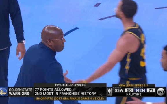 来源:JRS直播05-12 16:21JRS直播05月12日讯 ,NBA西部半决赛灰熊主场迎战勇士。结果此役上半场打出了令人不可思议的局面。灰熊第二节大爆发,单节打了勇士39-22,半场结束已经77-50领先勇士多达27分!而半场丢分77分,也创下勇士队史第二糟糕半场丢分纪录,堪称耻辱!