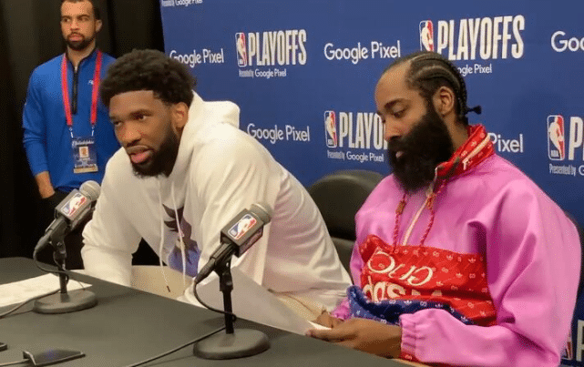 赛后,哈登和恩比德一起参加了发布会。谈到自己今天的表现,哈登说道:“什么都没变,我就是投进了一些球,而这改变了比赛。”哈登还表示随着系列赛的进行,大家变得越来越有信心,特别是在恩比德回归后。恩比德本场贡献24分11篮板。