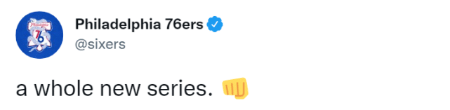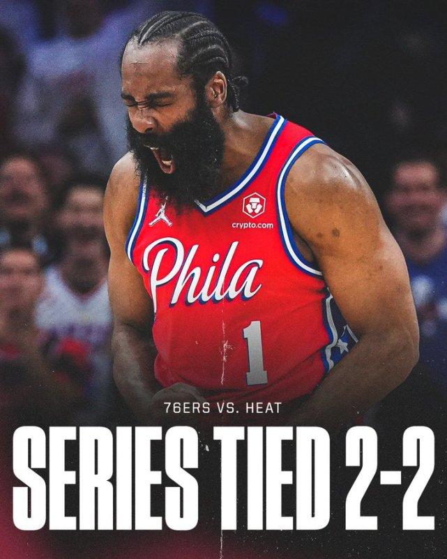 76人官方晒出了里弗斯赛后在更衣室鼓舞士气的画面,并配文写道:一轮全新的系列赛。确实如此,2-2的比分意味着双方回到同一起跑线,接下来的比赛,谁先拿到两场胜利,谁就能杀入东决了。