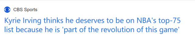 欧文抱怨未入选75大巨星!自称篮球变革一份子,卡特没上榜也不满