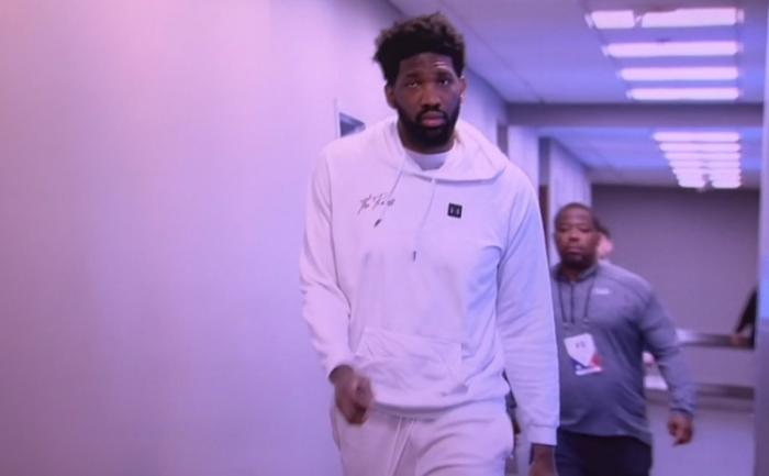 在首轮第六场末节垃圾时间,恩比德被西亚卡姆肘击到面部,导致右眼眶骨折以及脑震荡;恩比德因伤缺席了次轮第一场和第二场,G3赛前,恩比德的出战状态被升级为小概率出战,通过赛前热身之后,最终恩比德决定出战G3关键一战。