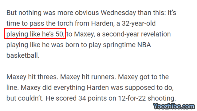 Marcus Hayes写道:是时候让哈登(一个32岁的球员打球像50岁)把火炬传给马克西了“。这是二年级的启示,他的表现就像是为春季的NBA篮球而生。”