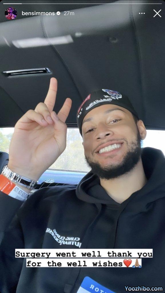 西蒙斯在术后首次亮相,冲着镜头比V并且一脸笑容,配文写道:手术很顺利,感谢大家的祝福。
