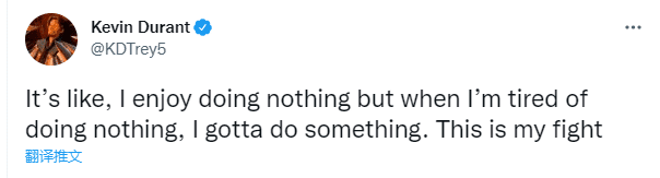 不久前,杜兰特发推回应外界质疑,发推写道:感觉就是这样,我享受啥事都不干的状态,但假如我厌倦了什么都不干,那我总得做点事吧。这是我的战斗。