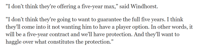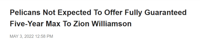 “我不认为他们会给一份5年顶薪,”文霍斯特说,“而且我不认为他们会全额保障这5年合同。在我看来,他们不愿意让锡安拥有球员选项,换句话说,给他一份5年合同,但鹈鹕要设置保障。双方会就保障的条款方面进行讨价还价。”