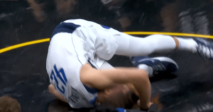 末节,克莱贝尔扣篮时被麦基撞倒腿部,身体失去平衡并且重摔倒地,所幸颈部没有受伤,这一幕太吓人;之后东契奇的大腿被麦基撞了一下,捂着大腿一瘸一拐继续坚持,伤势无碍继续打比赛,并且带队顽强抵抗,两次突破暴扣,终场前47秒追到仅落后5分,无奈所剩时间太少,最终独行侠输掉比赛,诺天王坐在场边观战,东契奇拒绝提前投降的态度令人称赞。