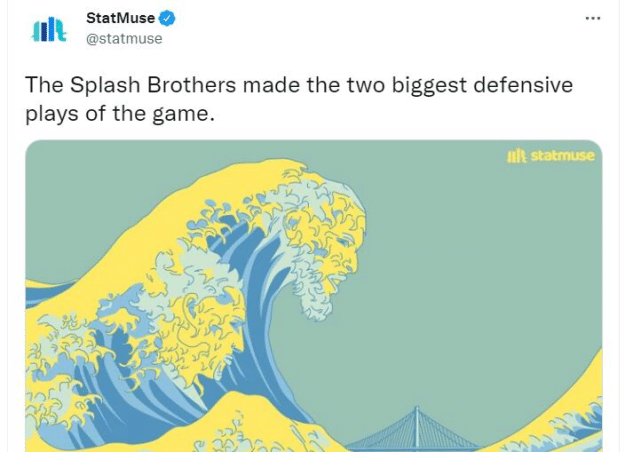 美媒StatMuse赛后也晒出了水花神图,写道:“水花兄弟上演了这场比赛最重要的两次防守!”都知道水花以三分见长,但今天他们用防守锁定胜局!