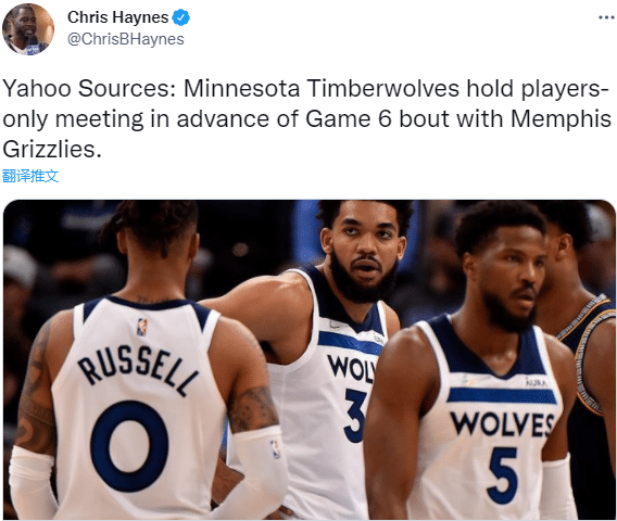 来源:JRS直播04-29 09:26JRS直播04月29日讯 ,据名记Chris Haynes报道,在系列赛G5输给灰熊后的第二天,森林狼队内举办了一场只有球员参加的内部会议,爱德华兹主动担责,并且保证多抢篮板,悍将比斯利豪言要上演黑七奇迹。