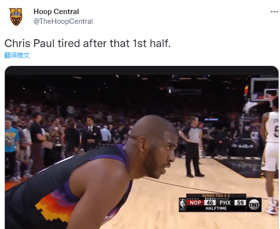 第二节,保罗打满12分钟又贡献8分,带领太阳一直保持两位数的领先,半场领先13分,不过面对“老六”阿尔瓦拉多的撕咬式贴身防守,保罗打得十分劳累,中场休息时,保罗弯腰并且双手扶着膝盖,显得十分疲惫。