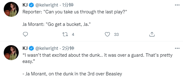 莫兰特封神一战冲上热搜引热议,赛后爆粗口直言:告诉他们Fxxking给我打电话;詹姆斯发推狂赞莫兰特:贾!!!(秀肌肉表情)。