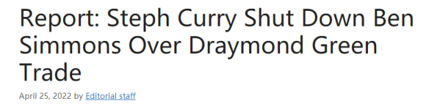 来源:JRS直播04-26 15:54JRS直播04月26日讯 ,在最新一期的节目中,名嘴斯蒂芬-A-史密斯爆料称,消息人士透露,费城76人曾想用西蒙斯换追梦,而这一提案被库里否决了。