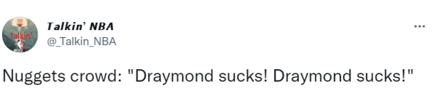 不过比起詹姆斯那一次,约基奇的情况还没有那么严重。他很快回到场上,继续比赛。掘金主场球迷大骂追梦。