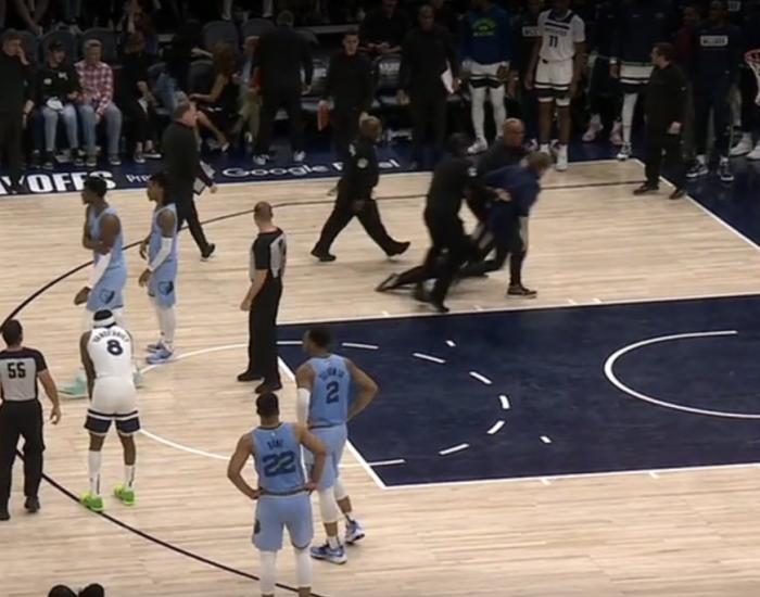 来源:JRS直播04-25 10:49JRS直播04月25日讯 ,NBA季后赛森林狼主场再次大战灰熊,第三节场上又发生球迷闯进球场的事件,比赛被迫暂停,闹事的女球迷被拖走并且赶出球馆。