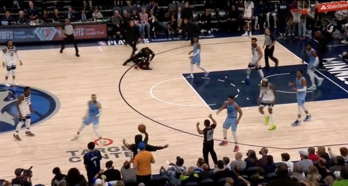 场上发生突发事件,比赛被迫暂停;在森林狼主场,自从附加赛以来,这已经是第3次发生类似的事,此前有女球迷用胶水把自己粘在地板上,还有女球迷用铁链把自己拴在篮架上。