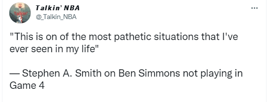 名嘴A-史密斯直言西蒙斯放弃了,本西不上场还申诉追讨2000万美元,这是最可悲的情况之一。