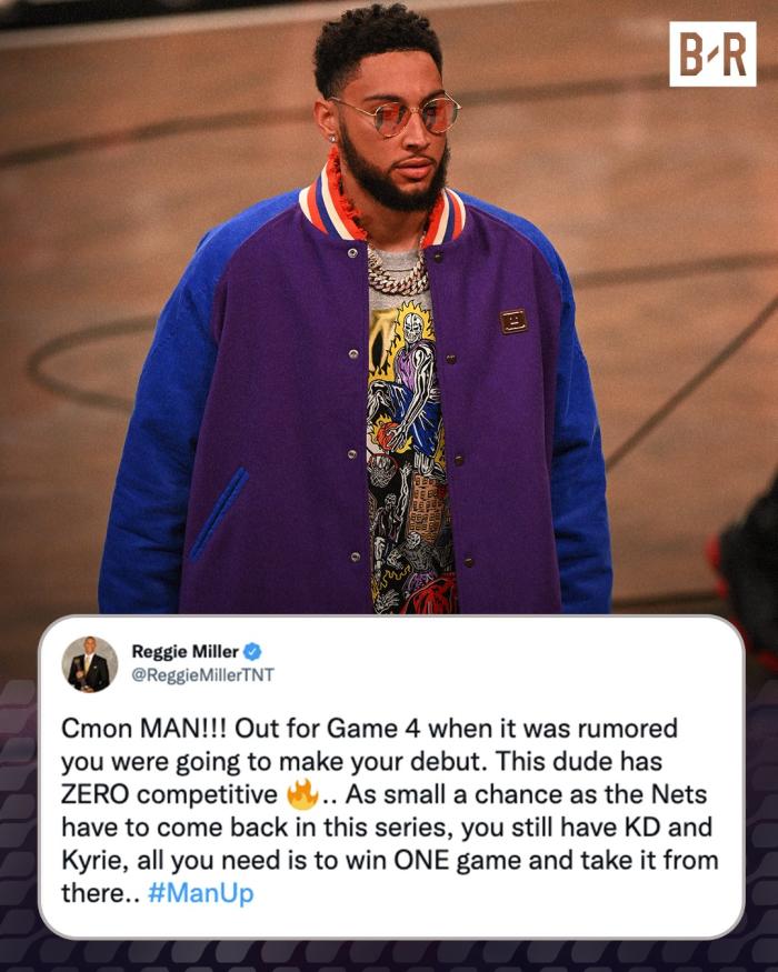 西蒙斯缺席G4引热议,NBA名宿雷吉-米勒发推写道:拜托,伙计,在传言你要在G4复出时,你却又缺席了。这个家伙一点好胜心都没有!尽管篮网能扳回这个系列赛的可能性很小,但你还有杜兰特和欧文,你所需要做的只是帮助他们拿下一场比赛,然后开始尝试去逆转系列赛。