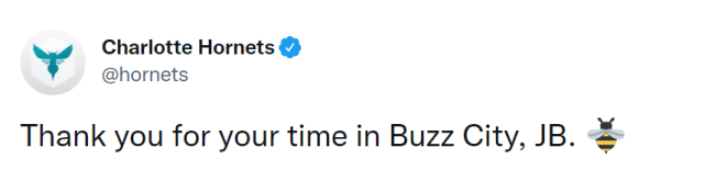 来源:JRS直播04-23 15:14JRS直播04月23日讯 ,夏洛特黄蜂官方宣布,球队已经正式解雇主教练詹姆斯-博雷戈。官方社媒上写道:“感谢您为Buzz City(蜂鸣之城)所做的一切,JB(博雷戈)。”