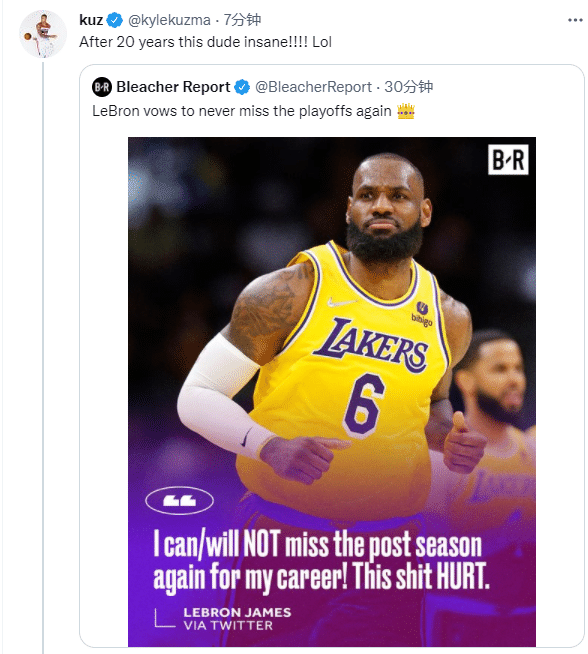 库兹马发推:在20年后,这家伙太疯狂了。